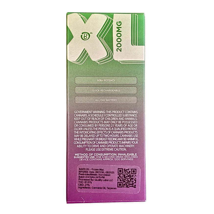 BARS XL “FROZEN MAC” 2G DISPOSABLE