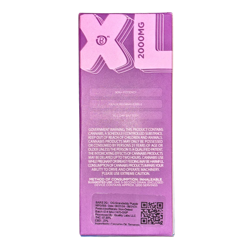 BARS XL “OG GRANDADDY PURPLE” 2G DISPOSABLE