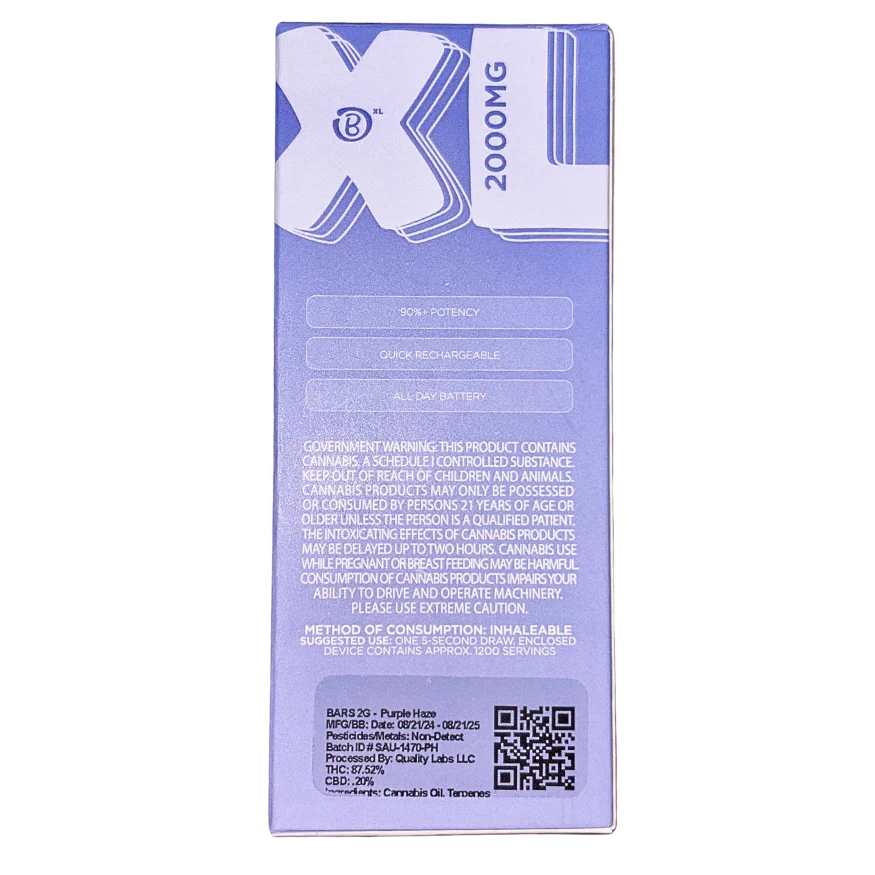 BARS XL “PURPLE HAZE” 2G DISPOSABLE