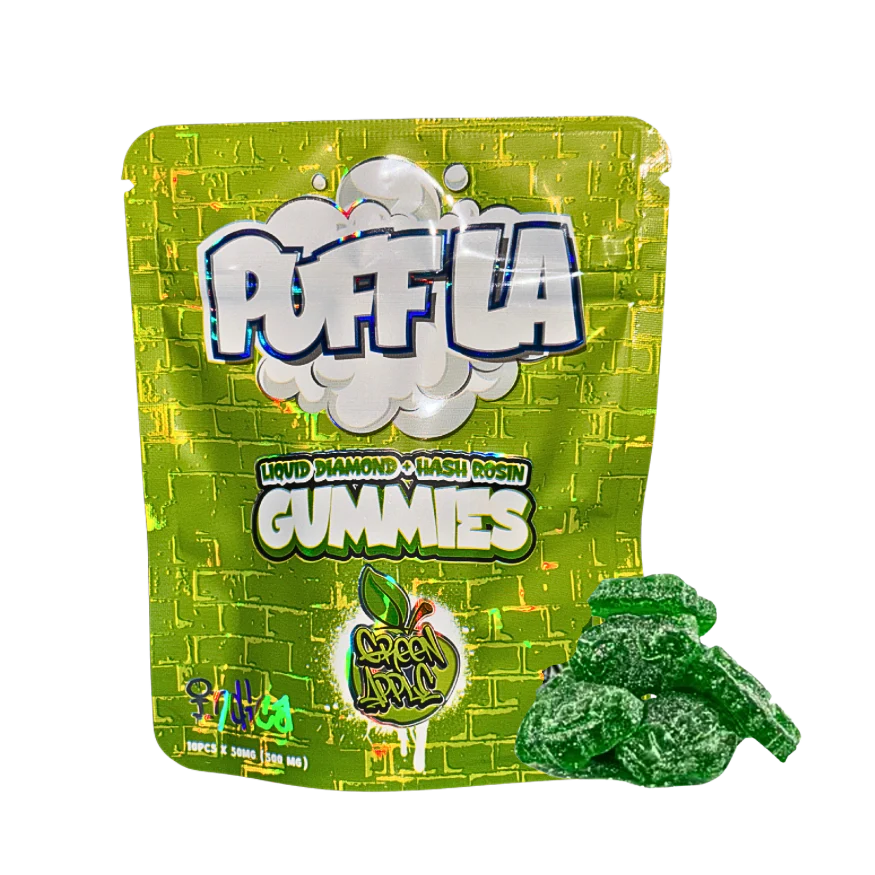 Experience the pinnacle of cannabis indulgence with Puff LA Gummies, expertly crafted to deliver an unparalleled taste and effect. Infused with premium liquid diamond and hash rosin, these vegan gummies offer a sophisticated and potent experience tailored for the discerning consumer. Each piece promises a smooth, elevated journey, combining the best of cannabis innovation with a commitment to quality and purity. Ideal for both seasoned enthusiasts and those new to the world of cannabis edibles, Puff LA Gummies are your perfect companion for a refined and enjoyable escape.