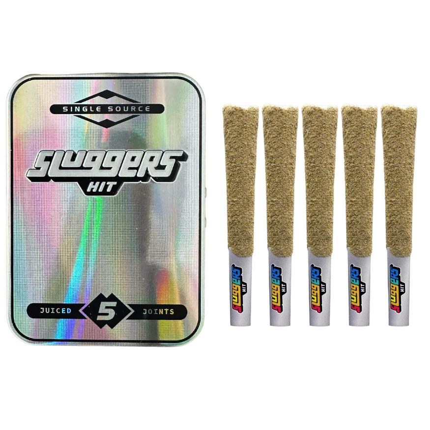 Each 5-pack of SLUGGERS HIT JUICED are infused with premium bud, liquid diamonds & solventless hash.