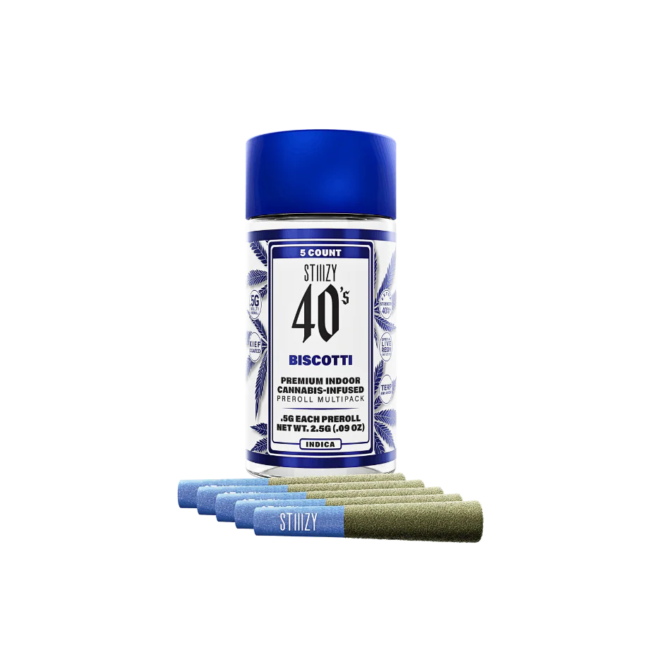 Elevate your pre-roll game. Stiiizy 40s pre-rolls are setting the standard with high potency, cannabis infused joints coated evenly with kief.